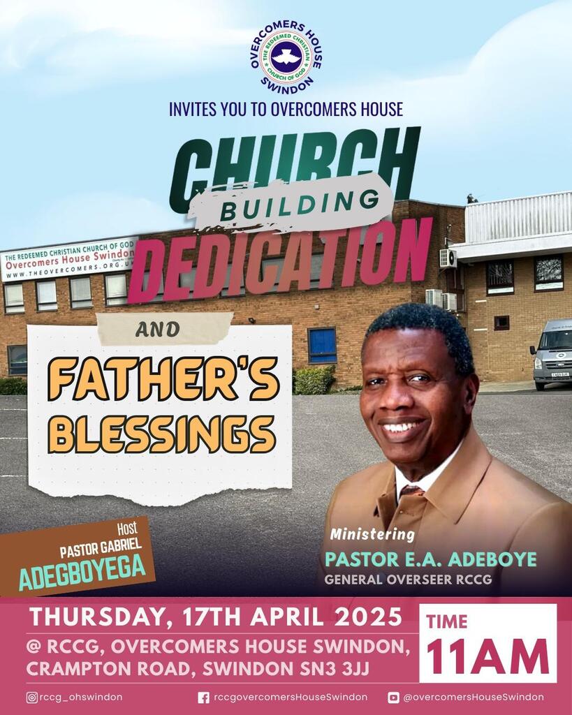 Father’s Blessings: Pastor E.A Adeboye dedicates Overcomers House Swindon building